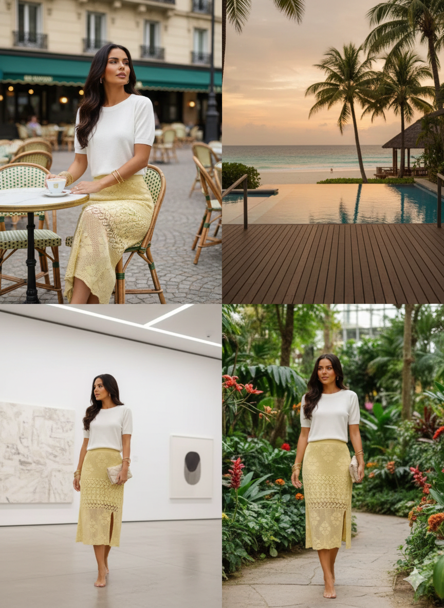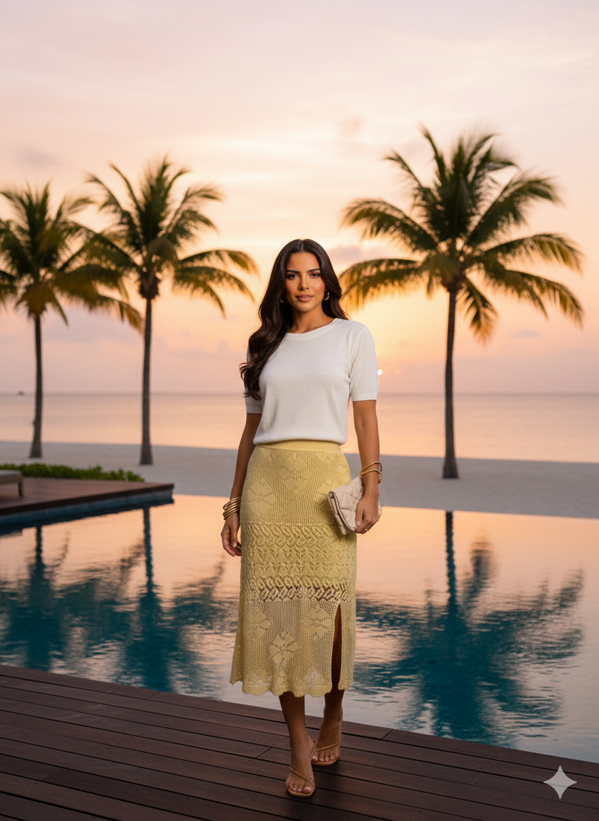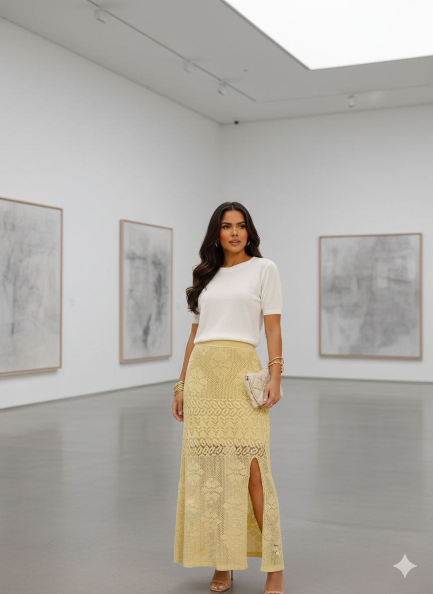 A saia rendada amarelo manteiga é uma opção ideal para quem deseja expressar leveza, alegria e personalidade através da moda. Combine com blusas neutras para um contraste elegante ou invista em uma paleta de cores complementares para um visual ousado e marcante. Sua versatilidade vai te surpreender, sendo eficiente tanto para looks diurnos quanto noturnos.